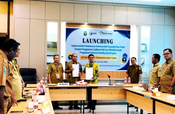 KAIMANANEWS.COM – Pemerintah Kabupaten Kaimana, Selasa (23/7/2024) melaunching penggunaan jaringan interkoneksi transaksi non tunai menggunakan aplikasi CMS (Cash Management System) dan SIPANDA (Sistem Informasi Pengelolaan Anggaran Daerah), serta Internet Banking Bank Papua.