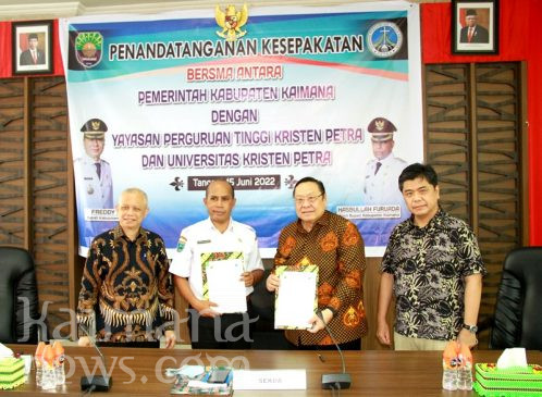KAIMANANEWS.COM- Pemerintah Kabupaten Kaimana, Rabu (15/6/2022) melakukan penandatangan kesepakatan bersama dengan Yayasan Perguruan Tinggi Kristen (YPTK) Petra dan Universitas Kristen Petra Surabaya.