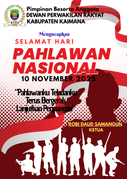 KAIMANANEWS.COM – Pemerintah Kabupaten Kaimana menggelar upacara peringatan Hari Pahlawan, Senin (10/11/2025). Peringatan Hari Pahlawan ini digelar di tiga titik yakni, Kantor Bupati Kaimana, Taman Makam Pahlawan dan Pelabuhan Laut Kaimana.