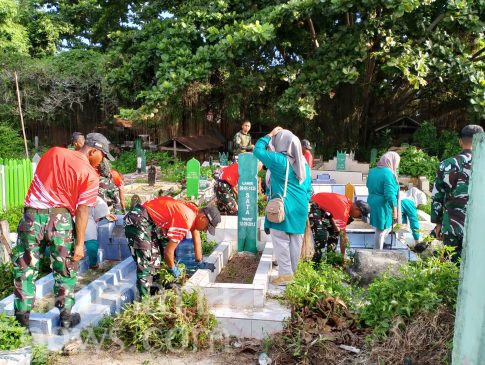 Sambut Harlah ke-76, Fatayat NU Kaimana Gandeng TNI Gelar Bakti Sosial Bersih TPU Krooy
