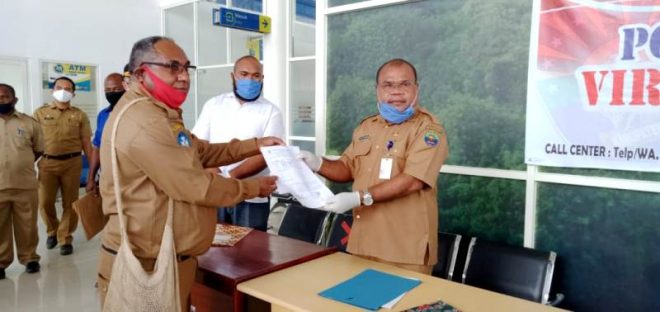 Serah terima yang berlangsung di Ruang Kedatangan Bandara Utarom Kaimana ini, turut disaksikan Sekretaris Dinas PPO Kaimana Julius Nanay, Pengawas SMA/SMK Kaimana Sahri, S.Pd,M.Pd, serta sejumlah staf Dinas PPO Kaimana.