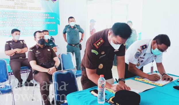 KAIMANANEWS.COM-  Unit Penyelenggara Pelabuhan (UPP) Kelas III Kaimana bersama Kejaksaan Negeri Kaimana, Kamis (13/1/2022), melakukan penandatangan kerjasama atau Memorandum of Understanding (MoU) terkait Pembentukan Satuan Tugas Anti Mafia Pelabuhan.