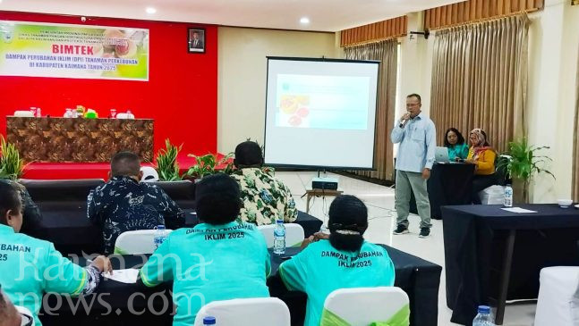 KAIMANANEWS.COM – UPTD Balai Perbenihan dan Proteksi Tanaman Perkebunan Dinas Tanaman Pangan Hortikultura dan Perkebunan Provinsi Papua Barat menggelar Bimbingan Teknis (Bimtek) Dampak Perubahan Iklim (DPI) Tanaman Perkebunan melibatkan kelompok tani serta staf Dinas Ketahanan Pangan dan Pertanian Kaimana, Kamis (10/7/2025).