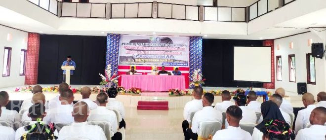 Kegiatan yang digelar di Gedung Serba Guna GPI Rehobot ini dibuka oleh Wakil Bupati Kaimana, Isak Waryensi, S.Tr, Senin (10/11/2025). Kegiatan ini diikuti oleh 100 orang Satpol PP berstatus PJLP (Penyedia Jasa Lainnya Perorangan).