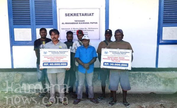 KAIMANANEWS.COM – Yayasan Al-Mahabbah Kaimana yang bergerak di bidang sosial, pendidikan dan keagamaan memberikan bantuan dana pembangunan rumah singgah warga Etna di Kompleks Telkom Kaimana, serta dana pembangunan menara lonceng gereja GKI Jemaat Maranatha Kampung Yarona, Distrik Buruway.